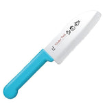 Tojiro Kinder Park children's Santoku with a 11.5 cm long rounded tip blade and blue handle.